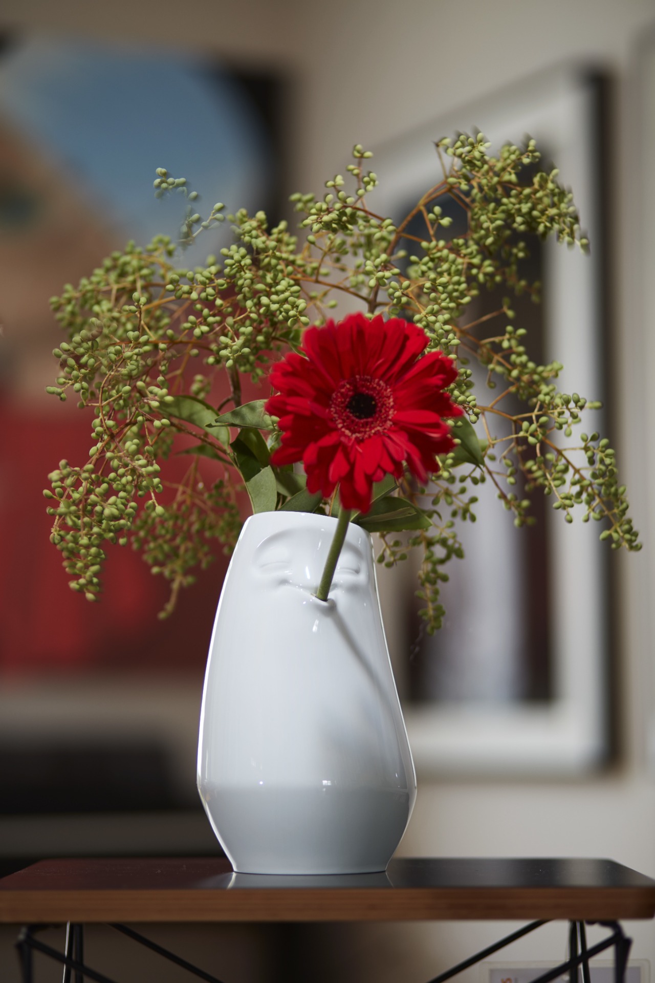 Met de vaas Laid-back verandert elk boeket bloemen in een handomdraai in een kunstwerk. En dit is het meest unieke kenmerk van onze charmante nieuwe vaas: in de glimlachende opening past een enkele bloem perfect!
