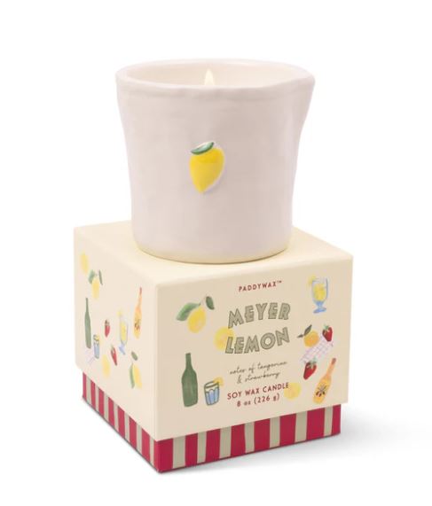 Keramische kaarsen van 227 gram in een doosje | Deze kaarsen, met prachtig handgeschilderde voedselpictogrammen, zijn niet alleen heerlijk geurend, maar ook een lust voor het oog en worden geleverd in leuke schuifdoosjes. Deze kaarsen zijn bovendien voedselveilig!