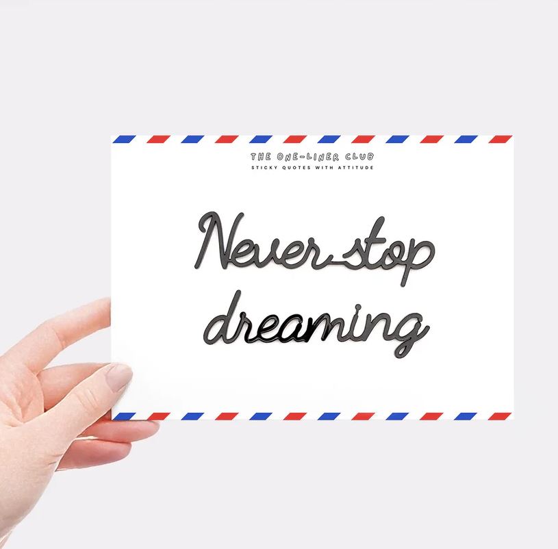 Onze zelfklevende quotes zijn een attent en origineel cadeau voor elke gelegenheid. Geef je ruimte een persoonlijk tintje met stijlvolle, inspirerende teksten die snel en eenvoudig aan te brengen zijn. Een schitterende verzameling woorden die ertoe doen, gemaakt om te blijven plakken.