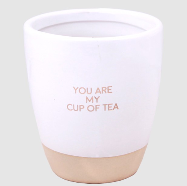 De witte keramieken mok met gouden quote You Are My Cup of Tea is na het branden te gebruiken als theemok – duurzaam, herbruikbaar en stijlvol.